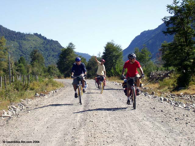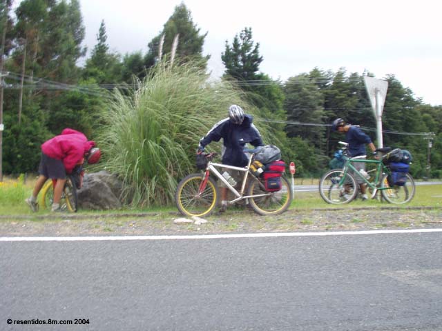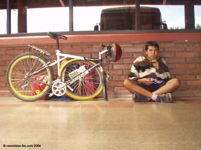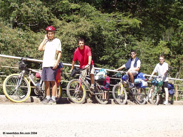 en verda no recuerdo mucho el viaje. la idea era irse en bus hasta un pueblo llamado Cunco. porqe parece que el viaje anterior (eduardo2) habia terminado ahi. despues de llegar a cunco, empezamos el viaje andando hasta el lago colico, seguir bordeandolo unos cuantos kilometros y llegar al conocido lago caburgua en donde un gran transbordador gringo nos iba a estar esperando para cruzar y asi llegar al otro lado de la costa a unos cuantos kilometros de pucon. Obviamente todo iba bien hasta llegar al lago caburgua. era de lógico que nunca existió un transbordador, y si lo ubo, este cruzaba una vez al mes y no era para pasajeros. por suerte un buen hombre nos dio unas indicaciones que a unos cuantos minutos, unas tres curvas bordeando el lago caminando ibamos a estar al otro lado sin ningun problema. aliviados por las indicaciones del buen lugareño emprendimos el camino bordeandosk el rio. pasaron minutos, horas, dias y nada pasó. pero solo una cosa nos mantuvo vivos!. en la mitad de la nada, por un camino muy brígido y tranfugo (ubiobio) aparecio un negocio, (pan amasado). corriendo hasta alcanzarlo procurando no estar alucinando o viendo visiones llegamos a una casa qe por supuesto tenia este negocio. una señora mas lugareña que el hombre anterior y mucho mas criolla nos atendio de muy buena manera. todos comiendo el tremendo pan amasado menos yo. nose en que estaba pensando en ese minuto que me reuse a comprar, nisiquiera pedirle a mis compañeros. bueno filo, la cague noma. siguiendo las indicaciones de la señora criolla a unos cuantos minutos, unas pocas curvas, y sibiendo un poco mas llegaremos a “reigolí” (entiendase en tono muy campesino). nadie entendia qe era “reigolí”, pero supuestamente al llegar ahi todo el camino iba a bajar y bajar y bajar hasta llegar a curarrehue. Obviamente y de nuevo, las cosas no fueron tan faciles, minutos, horas, muchas vueltas, subidas y una gran noche en la cordillera fueron la tonica antes de llegar al preciado reigolil, en donde por lo menos de ahi todo iba a bajar. por suerte, esa parte de las indicaciones fue, relativamente cierta. ya despues de reigolil las bajadas tomaron el protagonismo por sobre las subidas. todo fue mejor y pasivo. el cansansio parecia irse, el ambiente parecia mejor y mas amigable, hasta llegar a curarrehue. en donde el poto se me coció y desesperadamente paramos a cagar en una comisaria de carabineros. todos cagaron en el baño, y despues david les dijo fletos a los pacos por no prestarnos alojamiento. todo empezo a complicarse porqe se hacia tarde y no teniamos donde qedarnos la noche. no es tan facil armar carpas porqe ahora habia civilizacion y no podiamos ponernos en cualquier lado. llegando a pucon las cosas se calentaron, bruno tratando de conseguir alojamiento, mientras discutia con el grupo por que nadie qeria ir por su camino entre las montañas. al final bruno encontro alojamiento en el kilometro unosk del camino al volcan. y seguia enojado con el grupo. al otro dia decidimos ir donde nuestro buen amigo punky. qe por supuesto nos iba a proporcionar alojamiento y comida. lo qe realmente se tradujo en…. unas manzanas. seguimos a villarrica en donde ya todo terminaba. bruno muy picao corriendo a comprar su pasaje de vuelta a conce. yo qeria descansar, devin y david…. no me acuerdo qe qerian. la cosa es qe ese dia en villarrica nos fuimos a temuco donde el amigo gringo de gringo a pasar la noche. comiendo amburguesas gringas cagao de la risa por como hablabamos fue el final del segundo viaje en bici. la mañana siguiente llegamos a conce.